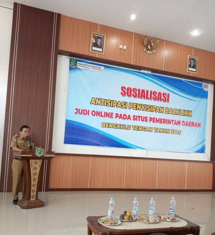 Pendopo Ujung Karang, Bengkulu Tengah - Dinas PMD Bengkulu Tengah yang diwakili oleh admin dan pengelola operator website Dinas PMD menghadiri kegiatan Sosialisasi Antisipasi Penyisipan Backlink Judi Online pada Situs Pemerintah Daerah Kab. Bengkulu Tengah, Senin (28/7/2025).
