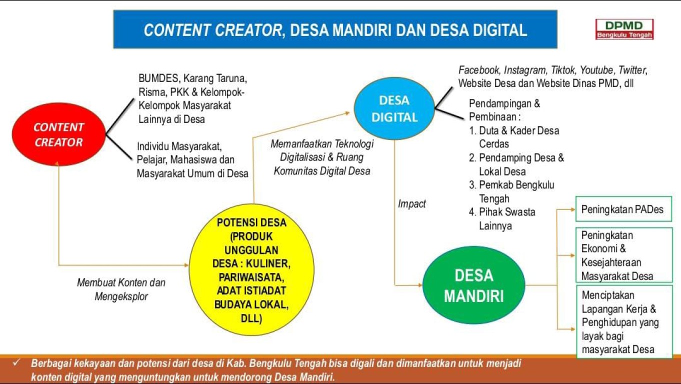 Pada hari pembukaan pelatihan peningkatan kapasitas dasar produksi video pembelajaran sabtu 07 September 2024 di Desa Kelindang Atas, Kadis PMD Kab. Bengkulu Tengah, Drs. Hendri Donal, S.H., M.H. berkesempatan menjadi narasumber menyampaikan materi peran content creator di desa untuk mendorong desa mandiri.